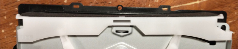I am borrowing a previously refurbished PS4 from a friend. When I pushed the eject button, the drive made a faint click and then the machine beeped 3 times. When I went to load a game for the first time, the slot drive blocked my disc. This drive has a little wall that it lifts up so that you don’t accidentally stick a disc in while the disc in the drive is spinning, but this drive had a bit of an underbite. That wall was jammed above its intended position and was locking the rest of the mechanism. I took apart the disc drive and reassembled it to make it functional again. This is a description of how I fixed this issue, and what I determined to be the correct alignment for the mechanism of one of these drives.