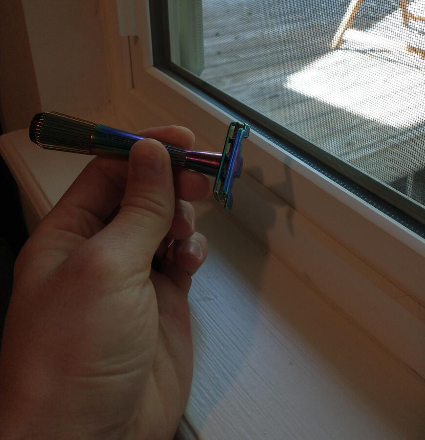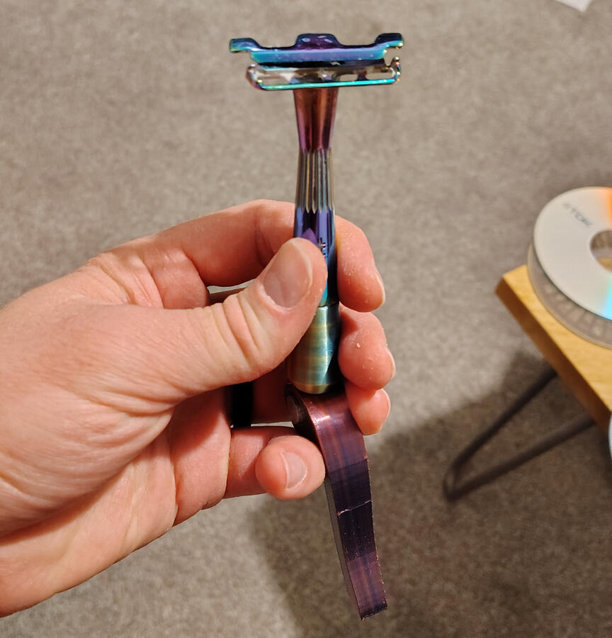 So how does that happen? It will definitely happen if the blade is loose and flopping around in the razor. At that point, the outer corners of the blade could be lifted out of their “safety” position, and they could poke you in the face. Now, this is an extremely sharp blade, and you are going to be accustomed to a low threshold of discomfort while shaving. It’s entirely possible that, if the blade comes a bit loose, you could cut yourself and not even realize it. This is exactly what can happen with the Leaf Twig if it is either under-tightened OR over-tightened.