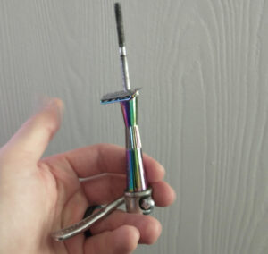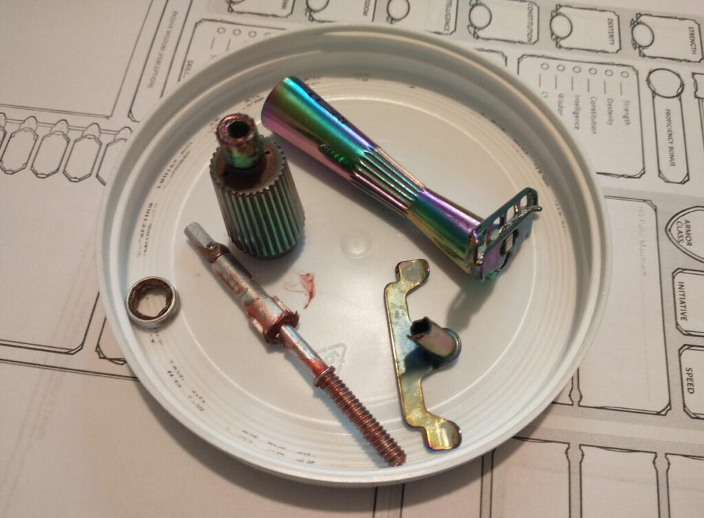 If you use one of these and the handle starts to turn with less resistance than you expect, DO NOT USE IT. I would bet dollars to donuts the lid tube has failed, and you’re about to cut your face with an unsecured razor blade like me.
