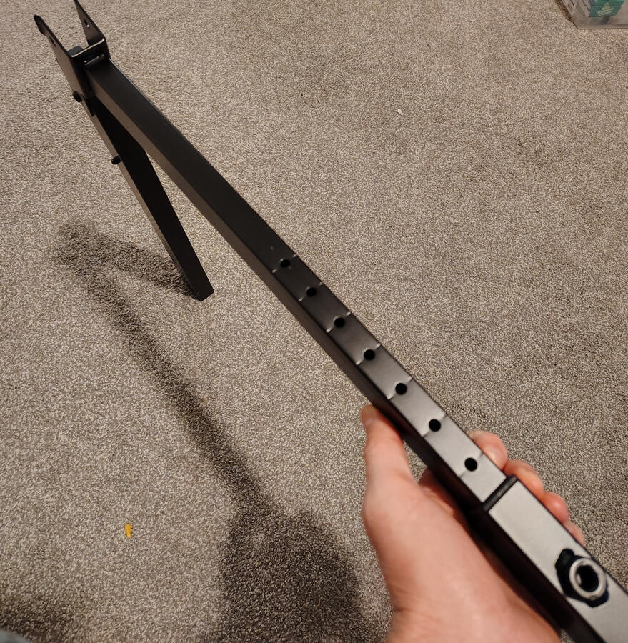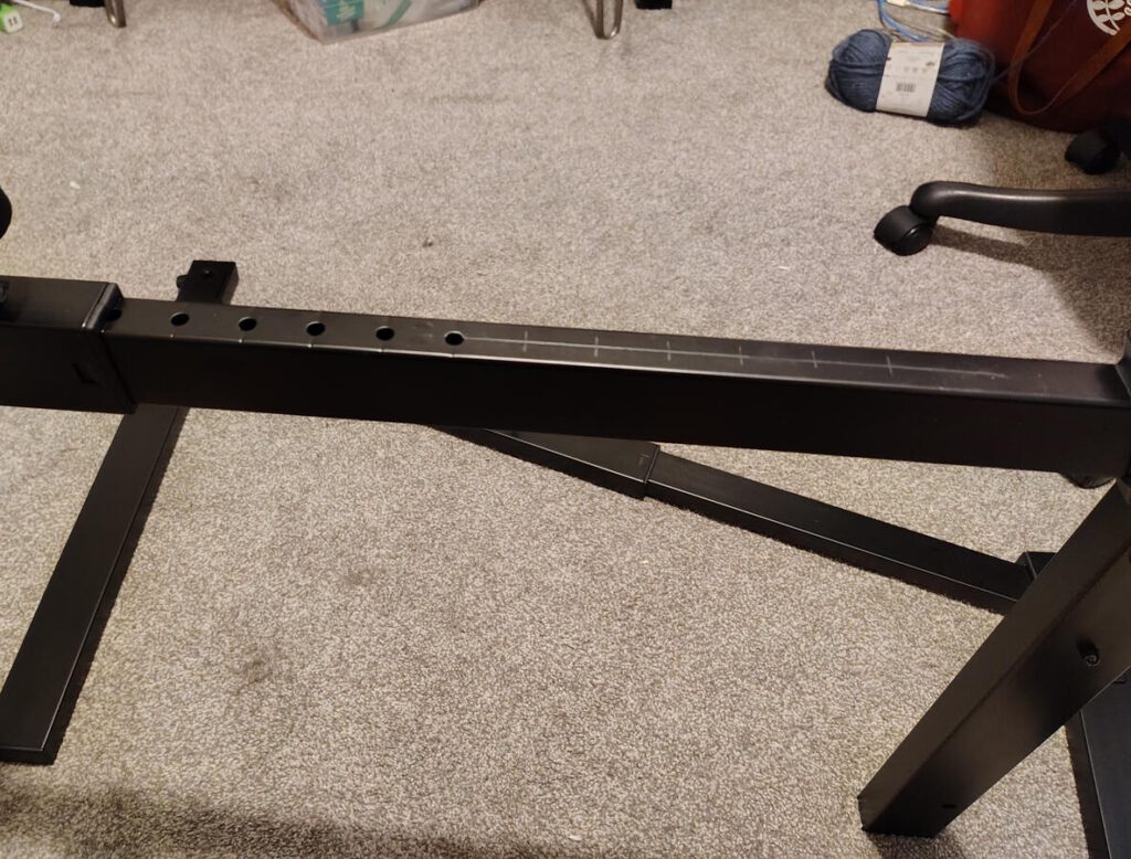 All I did for this improvement was to fully take apart the keyboard stand and drill a new array of adjustment holes in each of the legs and top rack posts. It was easy to do with a centerline tool and a drill press, but it was a huge improvement to the product. I honestly don’t know why they didn’t just sell it this way in the first place.