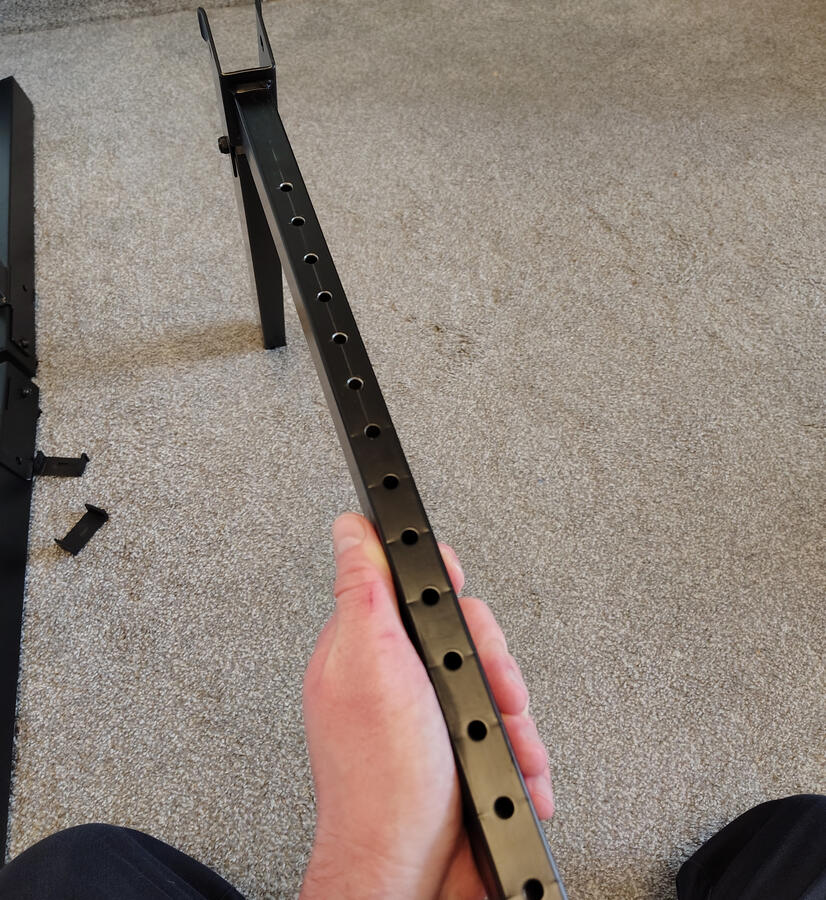 The stand is supposed to be adjustable from about 24 to about 36 inches tall, but the first 6 inches of the adjustment from 24 to 30 inches are missing. That becomes a problem because I want the keys of the keyboard to sit about 29.5 inches off the ground to match our upright piano, which means the keyboard stand needs to be adjusted to about 26.5 inches tall.